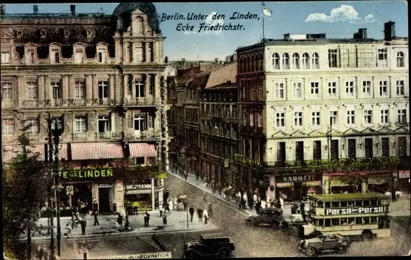 Ak Berlin Mitte, Unter den Linden, Ecke Friedrichstraße, Doppelstockbus, Reklame Persil