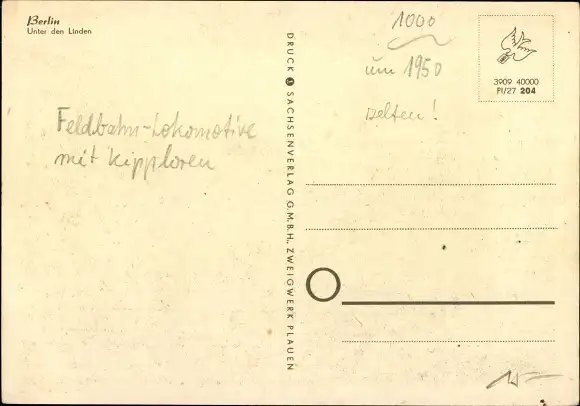 Ak Berlin Mitte, Unter den Linden, Feldbahnlokomotive, Kipploren