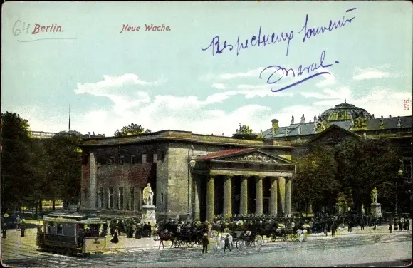 Ak Berlin Mitte, Unter den Linden, Neue Wache, Tram, Denkmal