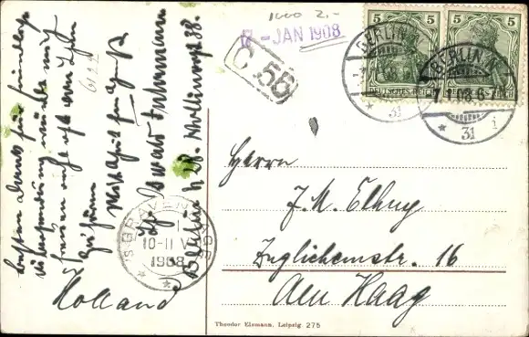 Zustand siehe Scan, 1900, gelaufen - ca 14 cm X 9 cm