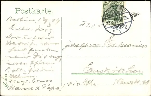 Zustand, siehe Scan, gelaufen, 1909 - ca 14 cm X 9 cm