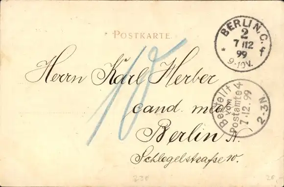 Zustand, siehe Scan, gelaufen, 1899 - ca 14 cm X 9 cm