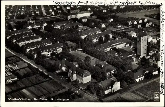 Ak Berlin Neukölln Buckow, Neuköllner Krankenhaus, Fliegeraufnahme