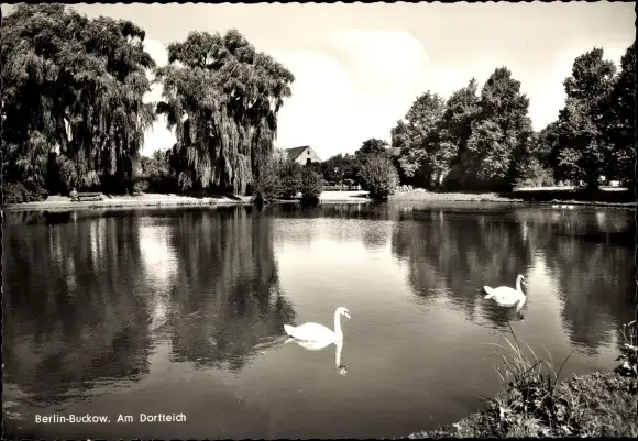 Ak Berlin Neukölln Buckow, Partie am Dorfteich, Schwäne