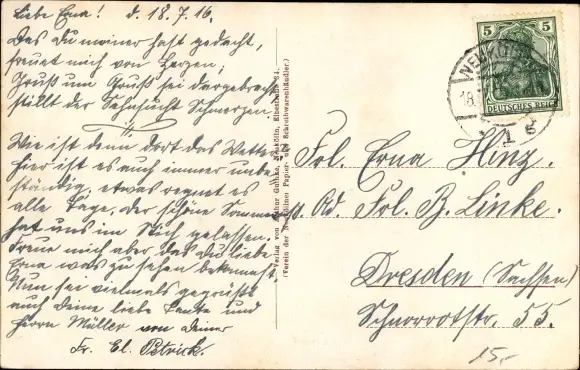 Zustand, siehe Scan, gelaufen, 1916 - ca 14 cm X 9 cm