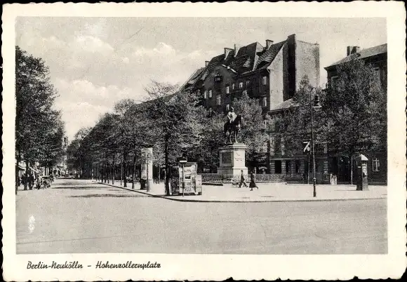Ak Berlin Neukölln, Hohenzollernplatz, Kaiser Wilhelm I. Denkmal, Litfaßsäule