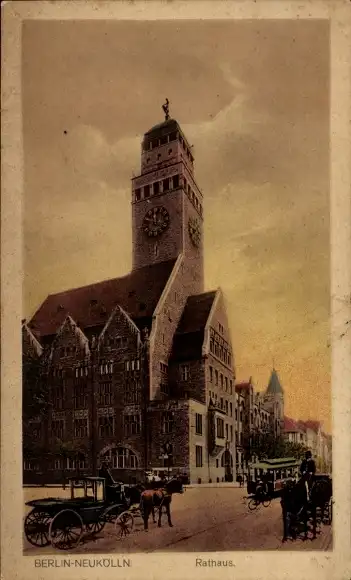 Ak Berlin Neukölln, Rathaus, Straßenbahn