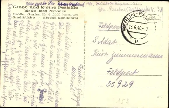 Ak Berlin Pankow, Restaurant Bürgerpark