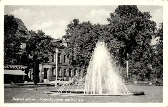 Ak Berlin Pankow, Springbrunnen am Rathaus, Straßenansicht