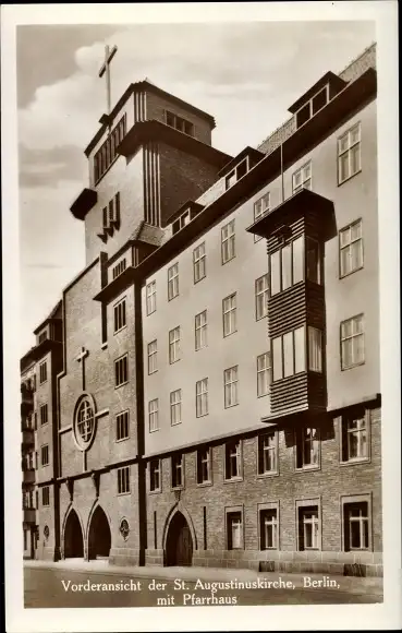 Ak Berlin Pankow, St. Augustinuskirche mit Pfarrhaus