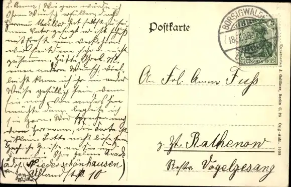 Zustand, siehe Scan, gelaufen, 1908 - ca 14 cm X 9 cm