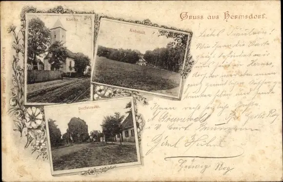 Ak Berlin Reinickendorf Hermsdorf, Kirche, Kuhstall, Dorfstraße