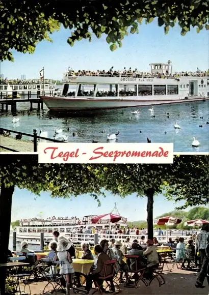 Ak Berlin Reinickendorf Tegel, Boot auf dem Wasser, Seepromenade, Menschen auf dem Boot, Enten au