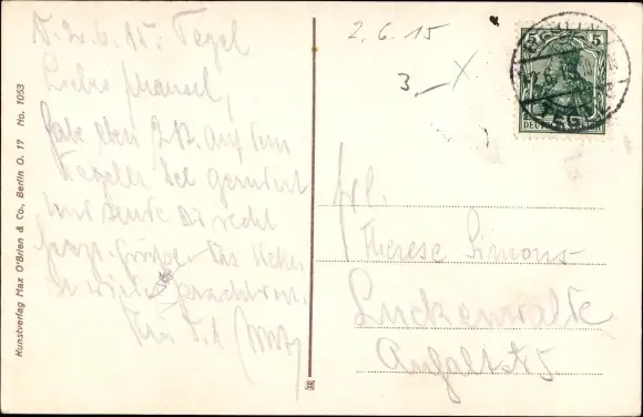 Zustand, siehe Scan, gelaufen, 1915 - ca 14 cm X 9 cm
