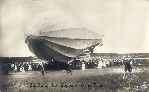 Ak Berlin Reinickendorf Tegel, Zeppelin 3, Landung, Zuschauer