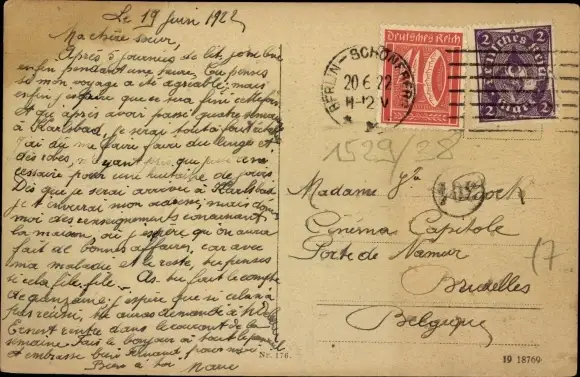 Zustand, siehe Scan, gelaufen, 1922 - ca 14 cm X 9 cm