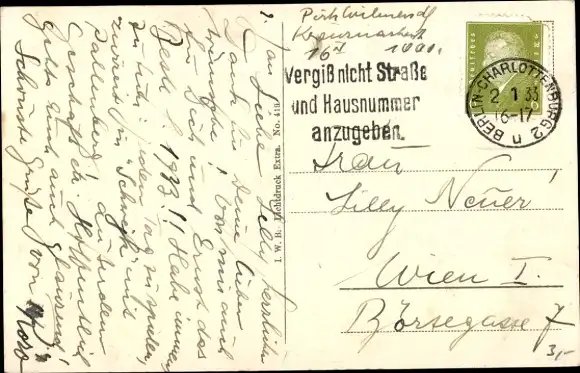 Zustand, siehe Scan, gelaufen, 1933 - ca 14 cm X 9 cm