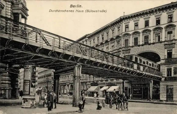 Ak Berlin Schöneberg, Durchbrochenes Haus, Bülowstraße, Hochbahn