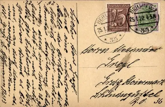Zustand siehe Scan, gelaufen, 1922 - ca 14 cm X 9 cm