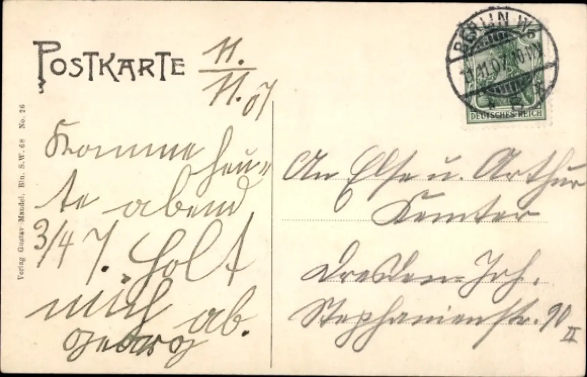 Zustand, siehe Scan, gelaufen, 1907 - ca 14 cm X 9 cm