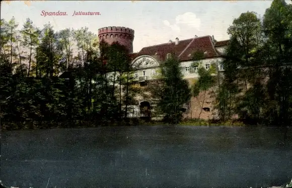 Ak Berlin Spandau, Blick übers Wasser auf Juliusturm