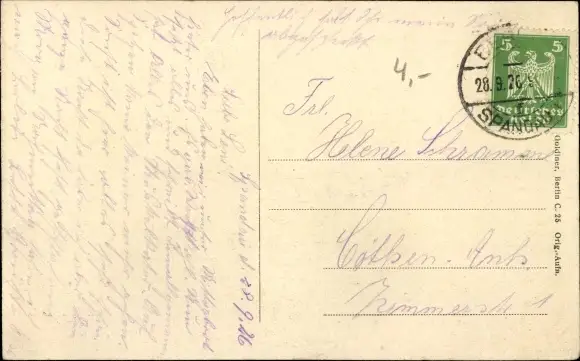 Zustand, siehe Scan, gelaufen, 1926 - ca 14 cm X 9 cm