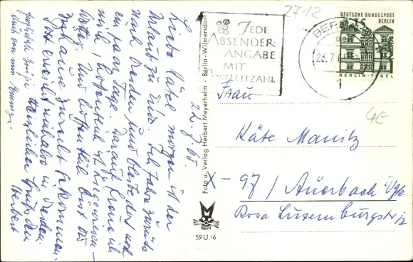 Zustand, siehe Scan, gelaufen, 1965 - ca 14 cm X 9 cm