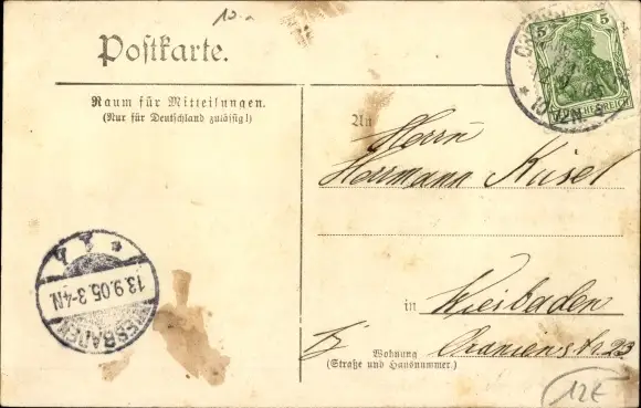 Zustand, siehe Scan, gelaufen, 1905 - ca 14 cm X 9 cm