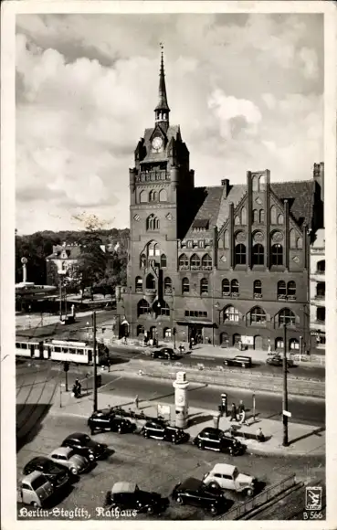 Ak Berlin Steglitz, Rathaus, Straßenbahn