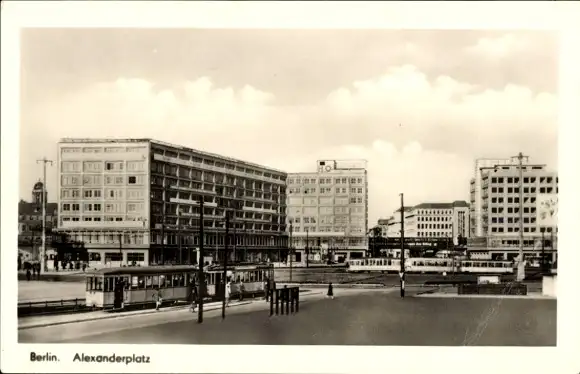 Ak Berlin, Straßenbahnen am Alexanderplatz, Hochhäuser