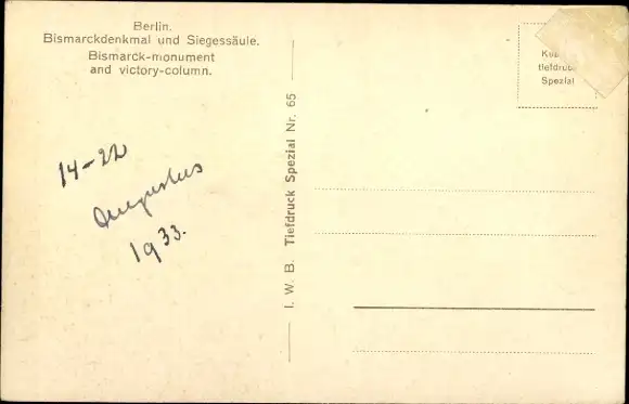 Ansichtskarte, Postkarte, Bismarck, Bismarckdenkmal, Bismarckhain, Bismarckstein, Bismarckturm