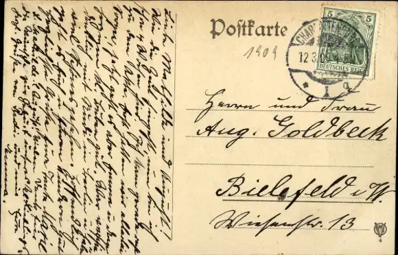 Zustand, siehe Scan, gelaufen, 1909 - ca 14 cm X 9 cm