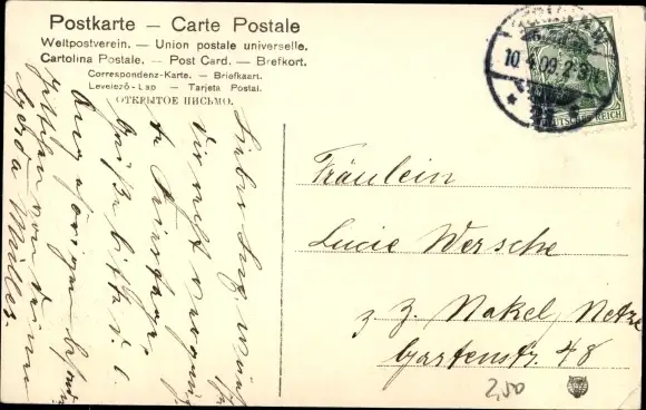 Zustand, siehe Scan, gelaufen, 1909 - ca 14 cm X 9 cm