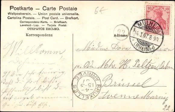 Zustand, siehe Scan, gelaufen, 1907 - ca 14 cm X 9 cm