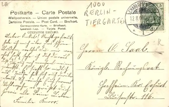 Zustand, siehe Scan, gelaufen, 1909 - ca 14 cm X 9 cm