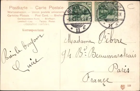 Zustand, siehe Scan, gelaufen, 1907 - ca 14 cm X 9 cm