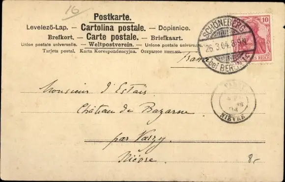 Zustand, siehe Scan, gelaufen, 1904 - ca 14 cm X 9 cm