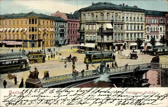 Ak Berlin Tiergarten, Potsdamer Brücke, Straßenbahnen