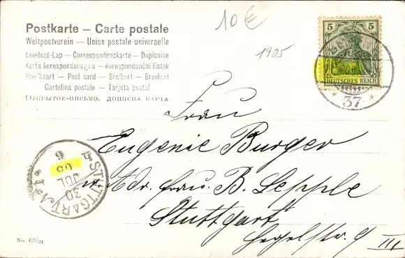 Zustand, siehe Scan, gelaufen, 1905 - ca 14 cm X 9 cm