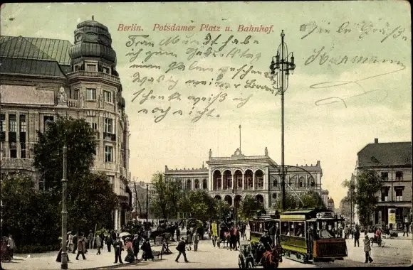 Ak Berlin Tiergarten, Potsdamer Platz, Bahnhof, Straßenbahn Linie 7