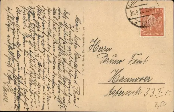 Zustand, siehe Scan, gelaufen, 1922 - ca 14 cm X 9 cm