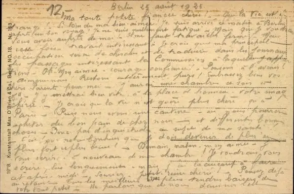 Zustand, siehe Scan, ungelaufen, 1925 - ca 14 cm X 9 cm