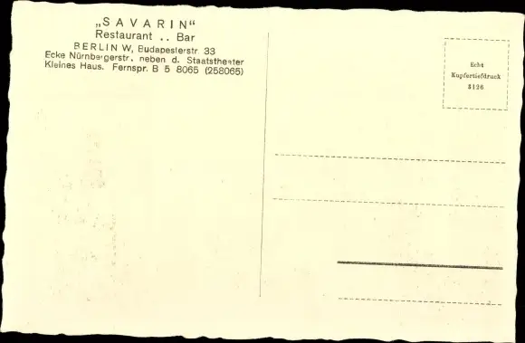 Ak Berlin Tiergarten, Restaurant, Bar Savarin, Innenansicht, Budapester Str. 33