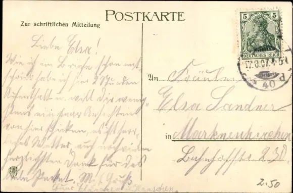 Zustand, siehe Scan, gelaufen, 1907 - ca 9 cm X 14 cm