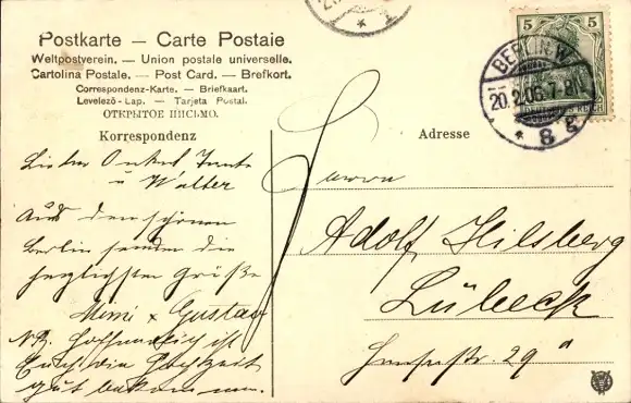 Zustand, siehe Scan, gelaufen, 1906 - ca 14 cm X 9 cm