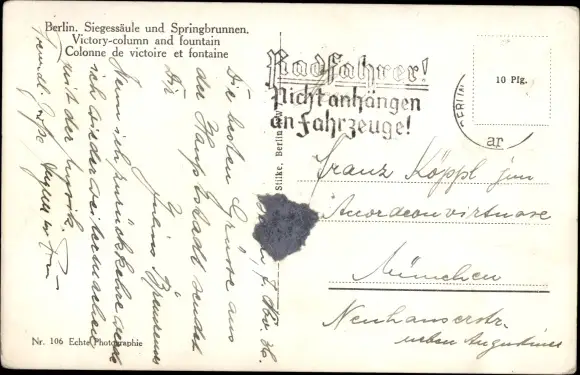 Ak Berlin Tiergarten, Siegessäule, Springbrunnen