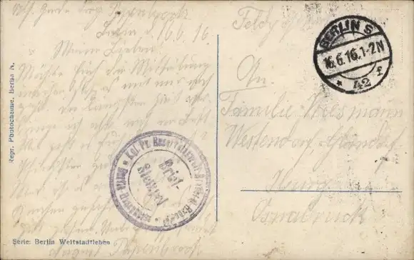 Zustand, siehe Scan, gelaufen, 1916 - ca 14 cm X 9 cm