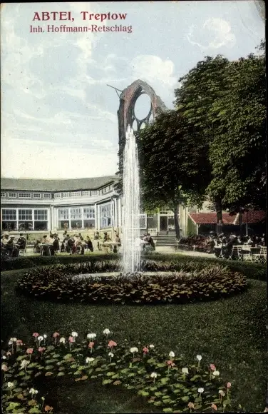 Ak Berlin Treptow, Abtei, Parkanlage, Springbrunnen