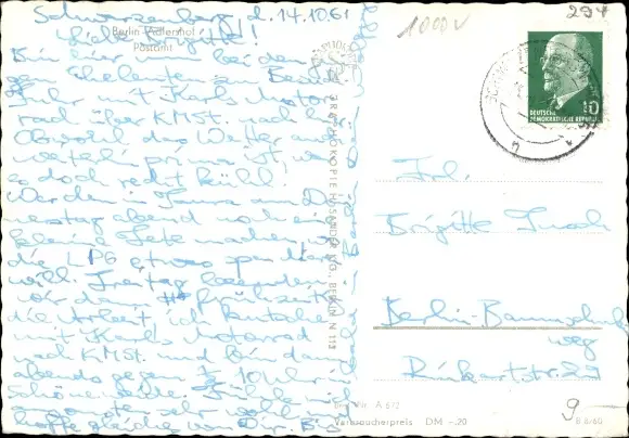 gelaufen 1961, Eckknicke, sonst guter Zustand
