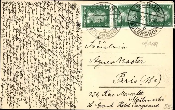 gelaufen 1927, Eckknicke, sonst guter Zustand